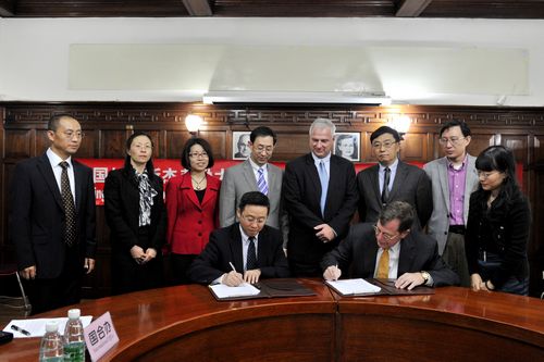 随后,李为民院长与Mark教授签署了合作备忘录。签约仪式后,Mark L. Tykocinski教授一行分别与骨科、放射物理中心、教务部、研究生部负责人就医疗科研合作、学生互派等问题进行了深入探讨和交流。
