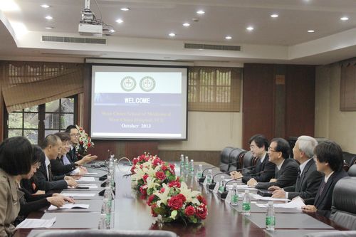 上午,龚启勇副院长及相关职能部门负责人在办公楼三会议室接待了金子周一教授。龚启勇副院长代表医院对来宾表示欢迎,并介绍了学院和医院的发展历史、现状、远期规划,及国际合作与交流情况。金子周一教授介绍了金沢大学的基本情况,以及我院目前在金沢大学攻读博士学位学生的基本情况,双方就今后的进一步合作进行了深入讨论。随后,在感染性疾病中心唐红主任陪同下,村上教授一行参观了门诊、感染性疾病中心及生物治疗国家重点实验室。