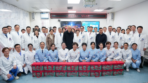 1月29日,四川大学校长汪劲松一行来院看望并慰问奋战在一线的医护人员,代表学校向大家致以诚挚的新春问候和美好祝福,感谢大家过去一年为守护人民健康、推动华西医学高质量发展付出的辛勤努力。程永忠书记、罗凤鸣院长等在家院领导参加慰问活动。