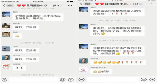 日间手术病房副护士长张雨晨率先报名参加医院应急储备队,成为第一梯队队员。她说:“作为护士长,作为一名共产党员,在这样公共卫生事件突发的时候,她不带头去,谁去。”共产党员杜姣姣在家休产假,看见科室工作群里大家踊跃报名去前线支援,“家里人都支持我的工作,如果有需要,随时归队。”
