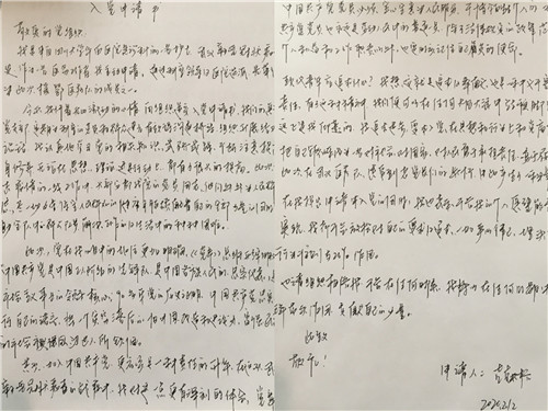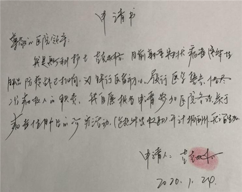 抗击疫情前线时间紧、任务重、条件有限,2月12日,吉克夫格在简单的白纸上写下了这份特殊的入党申请书,希望成为一名光荣的共产党员,为人民健康事业贡献自己的力量。