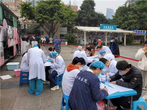 2月13日上午,麻醉科党团支部师生20余人在门诊广场采血车集体献血,党员、团员们发挥了带头作用。