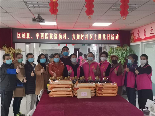科室得知抗疫期间,武侯区九如村社区部分居民因疫情不能外出务工,没有收入后,组织科室党员群众积极筹措物资并联系社区党委、武侯区妇联机关党委,共同开展送温暖活动,走访慰问辖区困难群体并送去米、面、油等生活必需品。