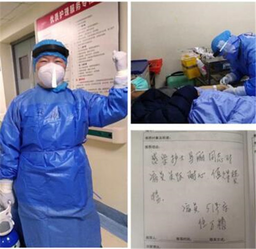 2月26日,一位来自浙江的老年食道癌患者,因气管食管瘘,进食只能依靠胃管管喂;剧烈的咳嗽让他夜间根本无法入睡,即使给予助眠药物,仍然无法睡眠。基于疫情防控的管理要求,护士让患者在带好口罩、拒绝家属探视时,患者显得十分烦躁和不配合。科室阳光天使、护理组长、党员任晓梅非常耐心地倾听患者诉求,反复与患者沟通,了解到患者身体的不适已让他非常痛苦了,加之各种限制更是让他踹不过气,感到孤独、绝望,有轻生的想法。科室阳光天使与任晓梅立即为患者开展个体心理疏导,每天给予更多的时间陪伴;与主管医生一起根据病情调整患者治疗方案,指导患者以微信视频的方式与亲人相聚;护理人员每天的温情陪伴,让他在疫情的特殊时期,获得更多的社会支持,重获治疗信心,积极配合治疗。患者在出院之际特地写下感谢信表达自己内心的感动。