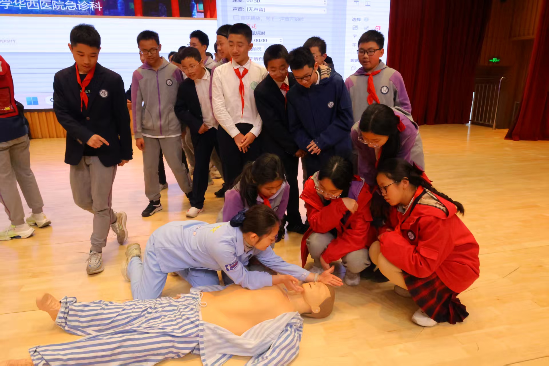 为深入学习贯彻习近平新时代中国特色社会主义思想,切实把“我为群众办实事”落到实处,提升青少年应急避险与自救互救能力,筑牢校园安全防线。近日,由我院主办的“青少年学校急救教育体系建设项目科普培训班”系列活动走进成都高新云芯学校,急诊科医务人员聚焦心肺复苏(CPR)与海姆立克急救法两大核心技能,通过理论讲解、示范教学、实操演练相结合的方式,让急救知识入脑入心,为青少年生命安全保驾护航。