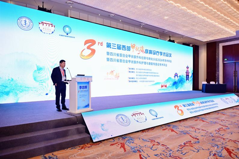 2026年3月27-28日,第三届西部甲状腺疾病诊疗学术会议暨四川省医创会甲状腺外科创新与转化分会2026年学术年会暨四川省医创会甲状腺外科护理与康复专委会学术年会在成都世外桃源酒店顺利召开。本次会议由四川省医学科技创新研究会主办,四川省医创会甲状腺外科创新与转化分会承办,四川大学华西医院协办,汇聚了国内甲状腺疾病诊疗领域的顶尖专家、青年才俊及基层医务工作者,共襄学术盛举。