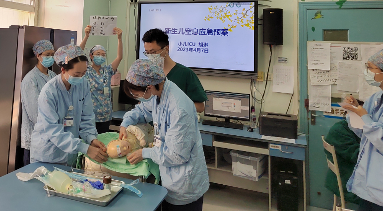 为规范突发事件应急预案管理,增强应急预案的针对性、实用性和可操作性,4月7日下午在医生办公室,儿科ICU举行了“新生儿窒息抢救与处理”的应急预案演练。本次演练由护理专业组长胡琳担任培训师,以情景与案例导入,基于医护技团队协作完成演练,冯梅护士长、罗玉兰副护士长及小儿ICU全体当班护士参与。